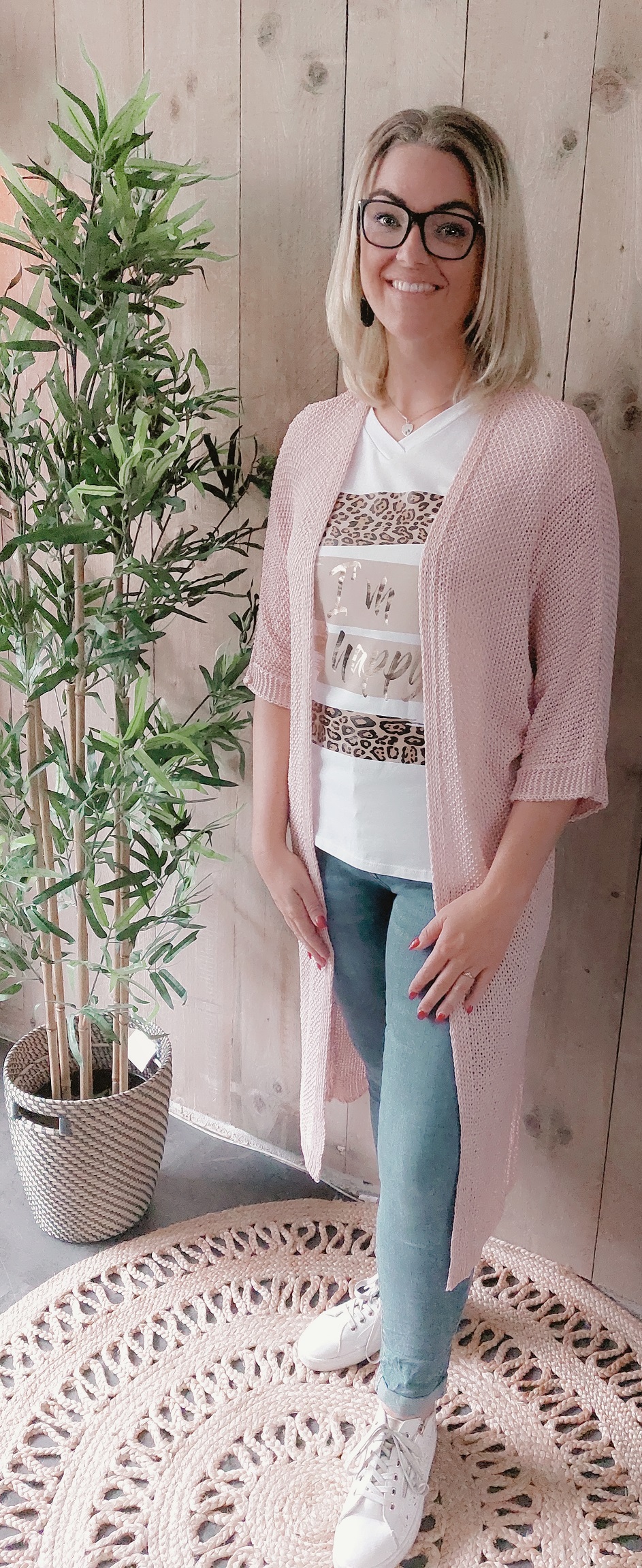 - Vest gehaakt roze 3/4 mouw