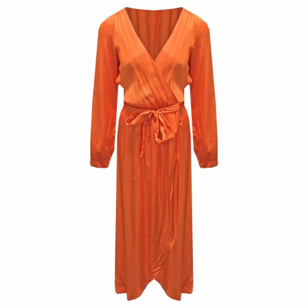Jurk overslag satijn oranje maat 36 – 38